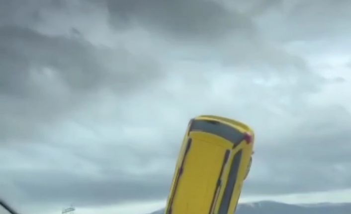 Van-Erciş karayolunda meydana gelen kazada elektrik direğine çarpan otomobil dik şekilde durması görenleri hayrete düşürdü.