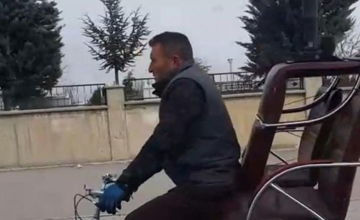 Van’ın Tuşba ilçesinde bisiklete 3 adet ofis sandalyesi yükleyen şahıs trafikte tehlike oluşturdu.