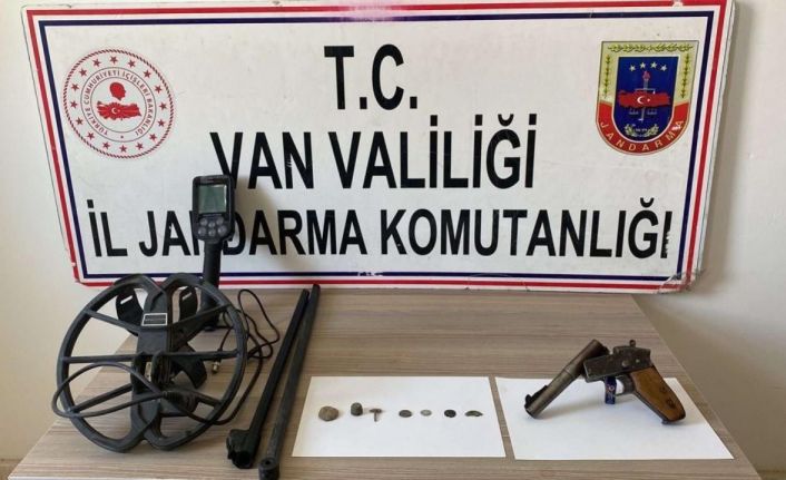 Van’da jandarma ekipleri, internetten satışı sunulan tarihi eserlere ve Osmanlı dönemine ait 1 tabancaya el koydu.