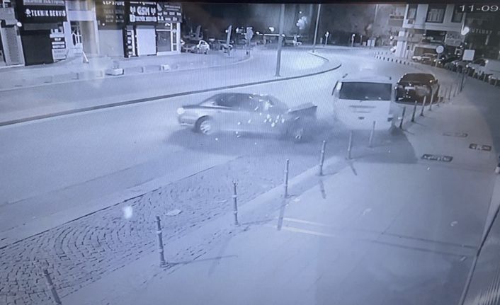 Kaza anı ise cadde üzerinde bulunan güvenlik kameralarına yansıdı. Kameraların kaydettiği görüntülerde, viraja süratle giren otomobil kontrolden çıkarak park halindeki minibüse çarpıyor. Çarpmanın etkisiyle minibüs yola çıkarken, duran otomobilden 3 kişi iniyor. Otomobilden inenler kazanın şokunu yaşarken, sürücünün başını ellerinin arasına alarak yaşadığı üzüntü yer alıyor.