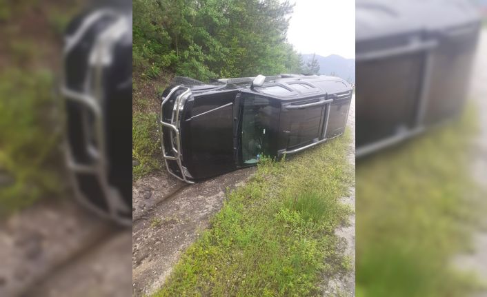 Kastamonu-Cide karayolu üzerinde virajı alamayan kamyonet, şarampolde devrildi, kazada sürücü yaralandı.