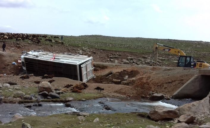 Alınan bilgilere göre, Diyarbakır ve Şanlıurfa’dan hayvan getiren 63 ACP 309 plakalı kamyonet Erzurum Tekman yolu Bilezik mezrasında sürücüsünün direksiyon hakimiyetini kaybetmesi sonucu şarampole yuvarlandı. Şarampolde yan yatan kamyonet içerisinde bulunan 50 küçükbaş hayvan telef olurken, bir kişide hafif yaralandı.