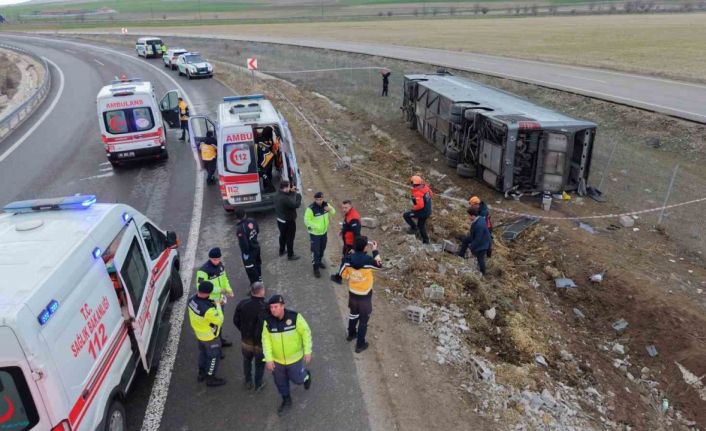 Aksaray’da otoyol girişinde virajı alamayan yolcu otobüsünün şarampole devrilmesi sonucu 23 kişi yaralandı.