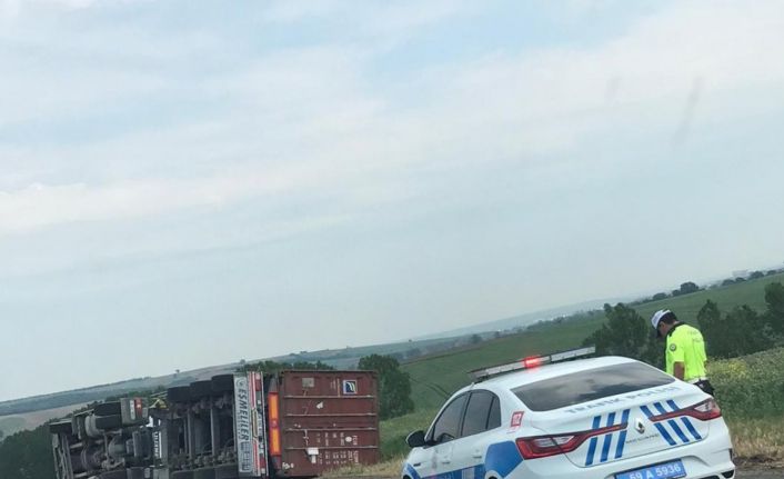 Tekirdağ’ın Muratlı ilçesinde virajı alamayan ağır tonajlı tırın devrilmesi sonucu meydana gelen trafik kazasında sürücü hastanelik oldu.