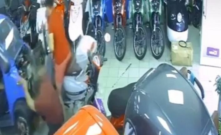 Olay, merkez Osmangazi ilçesinde bulunan bir motosiklet mağazasında meydana geldi. İş yerinin güvenlik kamerasına yansıyan görüntülerde, bir kişi motosiklet üzerinde oturduğu sırada viteste unutulan diğer motosiklet aniden hareket etmeye başladı. İş yeri çalışanı motosikleti durdurmaya çalışsa da hız alan motosiklet üzerinde bir kişinin durduğu motosiklete ve ardından mağazada satılmayı bekleyen diğer motosikletlere çarparak durabildi.