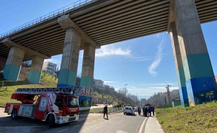 Olay, dün öğle saatlerinde Çenedağ Mahallesi Gaffar Okkan Caddesi’nde meydana geldi. Edinilen bilgiye göre, 33 yaşındaki A.Y. cadde üzerinde bulunan Cımbızdere Viyadüğü’nün korkuluklarına çıktı. Çevredekiler viyadük üzerindeki korkuluklara çıkan vatandaşı görünce durumu 112 Acil Çağrı Merkezi’ne bildirdi. İhbar üzerine olay yerine sağlık, polis ve itfaiye ekipleri sevk edildi. Yaklaşık 30 metre yükseklikteki viyadükten sarkan vatandaşı gören ekipler, hava yastığını açarak önem aldı. Polis ekipleri ise A.Y.’yi ikna etmeye çalıştı. Bir kişinin ellerinden tuttuğu vatandaş, daha fazla asılı kalamayarak kendini boşluğa bıraktı. Viyadükten aşağıya süzülen A.Y., itfaiye ekiplerinin açtığı hava yastığının üzerine düştü. Sağlık ekipleri vatandaşı sedye ile alarak, Derince Eğitim ve Araştırma Hastanesi’ne kaldırdı. Vücudunda kırıklar oluştuğu öğrenilen A.Y.’nin hayati tehlikesinin sürdüğü öğrenildi.