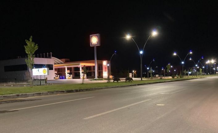 Malatya’da kent merkezine inen 2 yaban domuzu cep telefonu kamerasına takıldı.