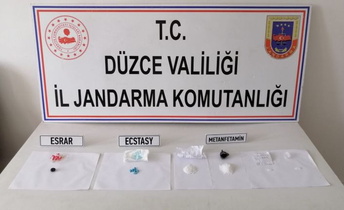 Düzce İl Jandarma Komutanlığı KOM Şube Müdürlüğü ekiplerince Kültür Mahallesi’nde uyuşturucu operasyonu gerçekleştirildi. Operasyon kapsamında N.M.T. isimli Afganistan uyruklu şahıs hakkında başlatılan projeli çalışma sonrasında birlikte hareket ettiği tespit edilen Afganistan uyruklu F.T. ve N.T. yakalandı. Şahısların ev ve eklentilerinde yapılan aramada 3 fişek halinde 1 adet siyah poşet içerisinde 16 gram metamfetamin, 6 adet ectacy uyuşturucu hap ve 3 gram reçine esrar maddesi ele geçirildi. Şüpheli şahıslar hakkında uyuşturucu madde ticareti suçundan adli işlem başlatılarak gözaltına alındı. Şahıslara ayrıca Yasadışı bulunma suçundan 14 bin 738 lira idari yaptırım uygulandı. Soruşturma sürecinde yapılan iki ara yakalamada 2 gram metamfetamin ve 1 gram reçine esrar ele geçirildi. Şüpheli 2 şahıs hakkında uyuşturucu madde bulundurma ve kullanmak suçundan adli işlem yapıldı.Yabancı uyruklu şahıslar uyuşturucu ile yakalandı