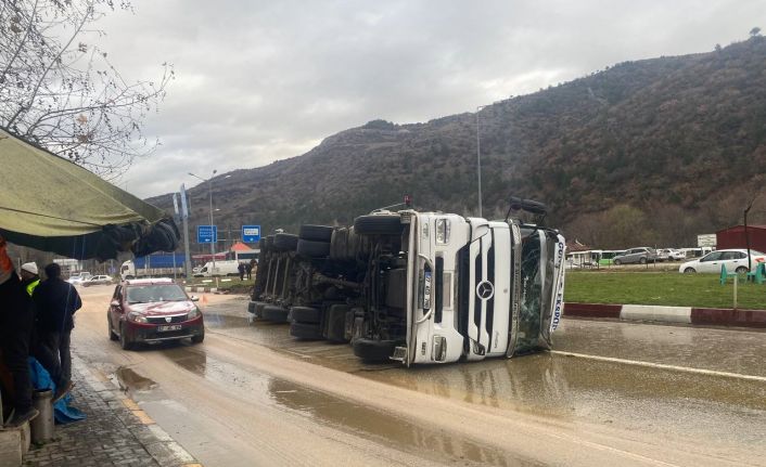 Edinilen bilgiye göre kaza sabah saatlerinde Tokat-Sivas kara yolu Geyraz mevki Çevre Yolu Kavşağı’nda meydana geldi. M.İ. idaresindeki 27 AEB 788 plakalı tanker, sürücüsünün hâkimiyetini kaybetmesi sonucu devrildi. Devrilen mikserden dökülen yağ nedeniyle kayganlaşan yolda, M.K. yönetimindeki 55 AOF 735 plakalı otomobil de şarampole düştü. Çevredekilerin ihbarı üzerine olay yerine sağlık ekipleri sevk edildi. Yaralı sürücüler ambulansla Tokat Devlet Hastanesine kaldırıldı.