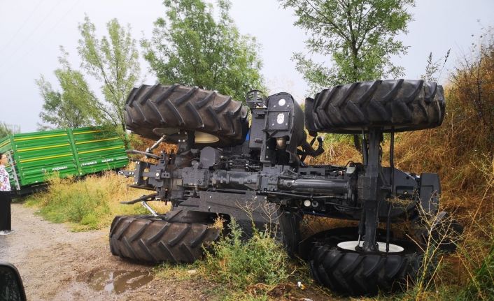 Olay, Tekirdağ’ın Muratlı ilçesinde OSB’de bir akaryakıt istasyonu önünde meydana geldi. İddiaya göre, Nevzat İ. (59) sevk ve idaresindeki traktör, aşırı yağışlardan kayganlaşan zeminin tesiriyle sürücüsünün direksiyon hakimiyetini kaybetmesi neticesinde devrildi. Traktör sürücüsü bir fabrikanın bahçesindeki kanala düştü. İhbar üzerine olay yerine gelen 112 Acil Servis ekipleri sürücüye müdahale ederken, Trafik Şube ekipleri ise yolda güvenlik önlemleri aldı.