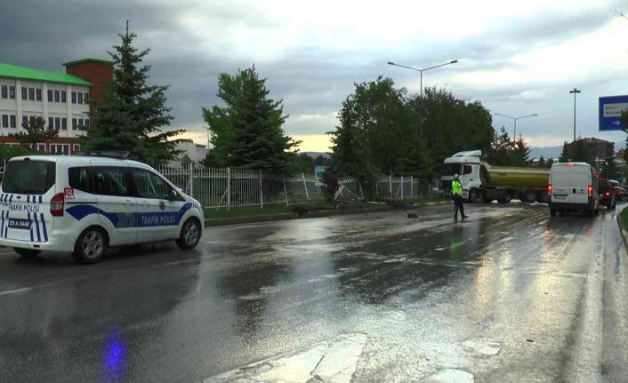 Kaza Ağrı-Erzurum D-80 kara yolu Atatürk Üniversitesi kavşağında meydana geldi. H.C. (53) kontrolündeki 25 DF 052 plakalı kamyon başka bir araca yol vermeye çalışırken yağış nedeniyle kontrolden çıkarak kaldırıma çarptı. Sürücü kamyondan kendi imkanlarıyla çıktı.