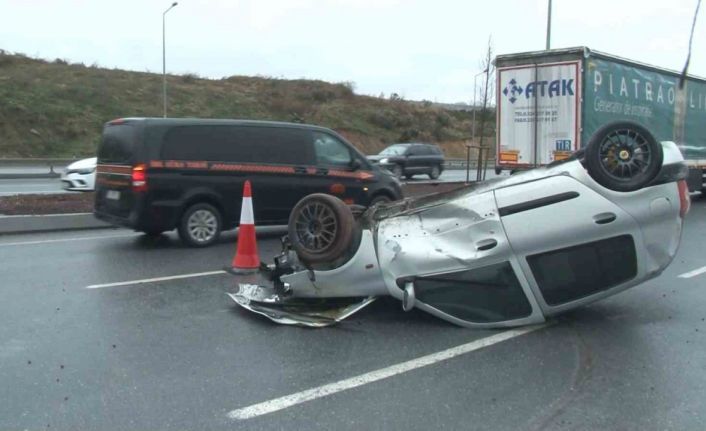 Başakşehir Çam ve Sakura Şehir Hastanesi’ne giden yolda yağışlı hava nedeniyle direksiyon hakimiyetini kaybeden sürücüler kaza yaptı. Bir otomobil takla atarken, bir minibüs ise refüje çıkarak durabildi.