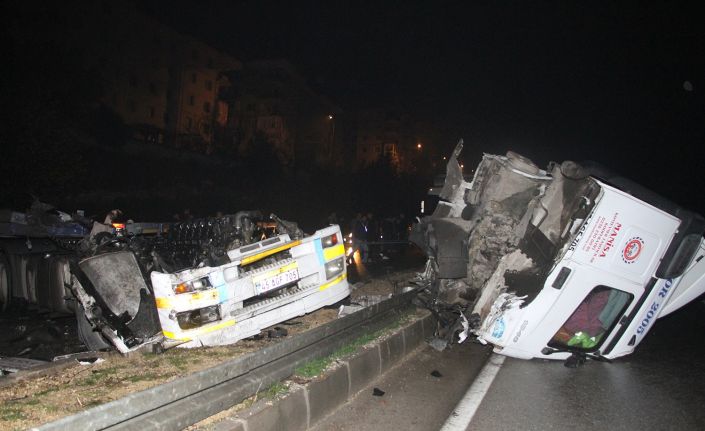 Yağışlı havada kontrolden çıkan tırın kupası ikiye bölündü