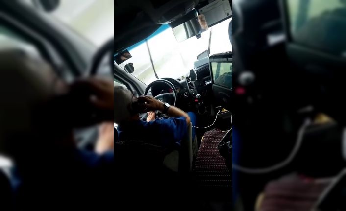 Sakarya’da Karasu ve Kocaali ilçeleri arasında yolcu taşımacılığı yapan minibüste, şoförün şiddetli yağışa aldırış etmeden seyir halinde telefonla konuştuğu anlar, cep telefonu kamerasına yansıdı.