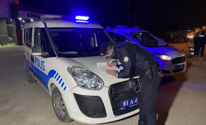 Düzce İl Emniyet Müdürlüğü ekipleri sokağa çıkma kısıtlaması kapsamında D-655 Zonguldak-Düzce Karayolu’nda denetim gerçekleştirdi. Denetimler esnasında Akçakoca istikametinden Düzce istikametine seyir halinde olan 34 TC 0904 plakalı otomobil sürücüsü D.A., uygulamayı görerek ters şeritten kaçmaya başladı. Bu esnada yapılan uygulamayı denetlemek için gelen Düzce Asayiş Şube Müdürü İsmail Caran, D.A’nın kullandığı aracın ters şeritten kaçtığını görüp aracı durdurdu. Aracın içerisine binerek tekrar uygulama noktasına getirilen Sürücü D.A. ve yanında yolcu olarak bulunan B.B.’nin sokağa çıkma kısıtlamasından muaf olmadıkları, izinsiz dışarı çıktıkları belirlendi. Araç sürücüsü D.A. ile B.B.’ye sokağa çıkma kısıtlamasında sokakta oldukları için 3 bin 150 lira idari para cezası yazıldı.