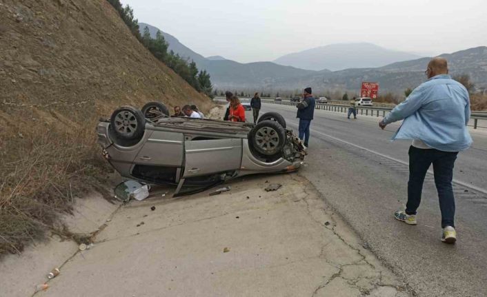 Burdur-Antalya karayolunda yağış sonrası kayganlaşan yolda kontrolden çıkan otomobilin takla atarak şarampole devrilmesi sonu 2 kişi yaralandı.