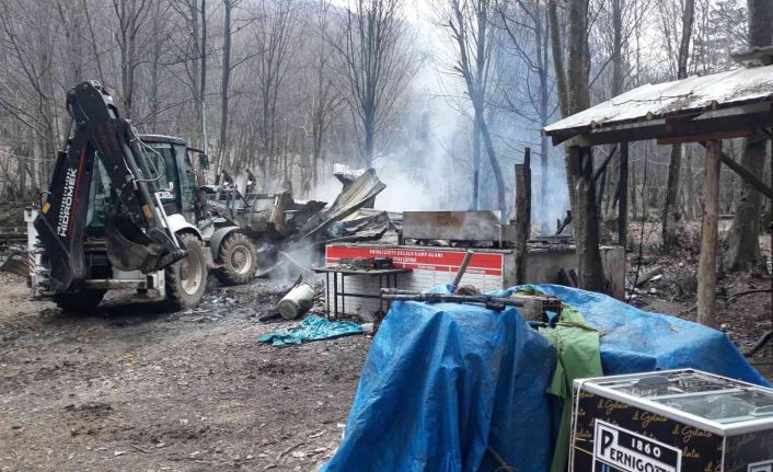 Yalova Teşvikiye Kent Ormanı’ndaki işletmede meydana gelen yangında ahşap yapı tamamen kül olurken, ateşlerin ağaçlara sıçramaması herkese derin bir nefes aldırdı.