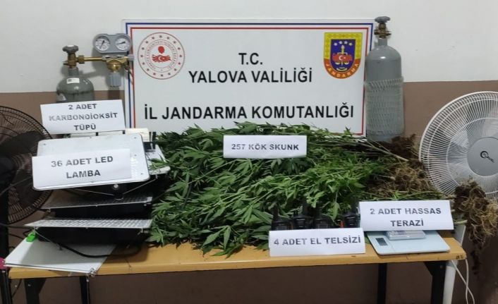 Yalova İl Jandarma Komutanlığı tarafından düzenlenen operasyonda, 2 katlı evin bodrum katına özel iklimlendirme sistemi kurarak uyuşturucu yetiştirdiği ileri sürülen 4 kişiden 2’si tutuklanarak cezaevine gönderildi.