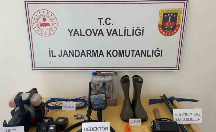 Alınan bilgiye göre, Yalova İl Jandarma Komutanlığı ekipleri, Çınarcık ilçesinde kaçak kazı yapıldığı bilgisine ulaştı. Kaçakçılık ve Organize Suçlar Şube Müdürlüğü ile Çınarcık İlçe Jandarma Komutanlığı unsurlarınca kaçak kazı yapıldığı bilgisi alınan bölgeye yapılan operasyonda A.C., S.A. ve N.A. suçüstü yakalandı. Operasyonda 2 dedektör, benzinli hilti, yer altı görüntüleme cihazı (yılan kamera), 2 patlatmada kullanılan batarya ve şarj cihazı, 5 metre bakır kablo, 2 adet kürek ve kazma ele geçirildi. Yakalanan şüpheliler hakkında adli işlem başlatıldı.