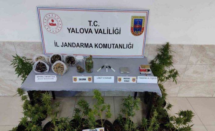 Yalova’nın Çiftlikköy ilçesinde düzenlenen operasyonda, evinde uyuşturucu imal eden şüpheli gözaltına alındı. Operasyonda, kurutulmuş 500 gram sihirli mantar, 22 kök skunk bitkisi, 110 gram kurutulmuş skunk, 40 gram likit esrar, hassas terazi ve tabanca şarjörü ele geçirildi.