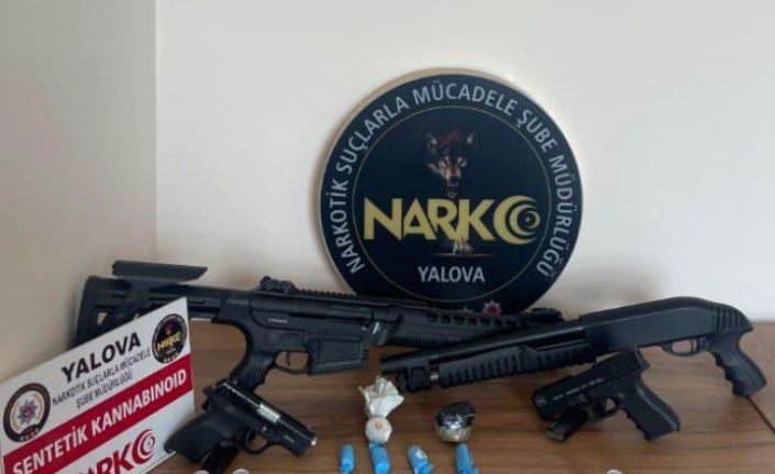Yalova Emniyet Müdürlüğü Narkotik Suçlarla Mücadele Şubesi ekipleri, kente çevre illerden uyuşturucu madde getirebileceğini değerlendirerek, yol uygulaması ve anlık şok operasyonlar gerçekleştirdi. Dedektör köpekler Zeytin ve Gölge eşliğinde yapılan aramalarda 171 gram skunk, 49.46 gram sentetik kannabinoid, 49.44 gram metamfetamin, sentetik ecza grubu tablet, hassas terazi, uyuşturucu madde öğütücüsü, 2 av tüfeği, 8 tabanca ve bu silahlara ait 144 fişek ele geçirildi. Operasyonlarda araçlarda bulunan Y.Ç., S.S., B.A., F.T., A.Y., Ç.B., M.U., F.K., H.B.K. ve T.M. gözaltına alındı. Emniyetteki işlemleri tamamlanan zanlılar adliyeye sevk edildi.