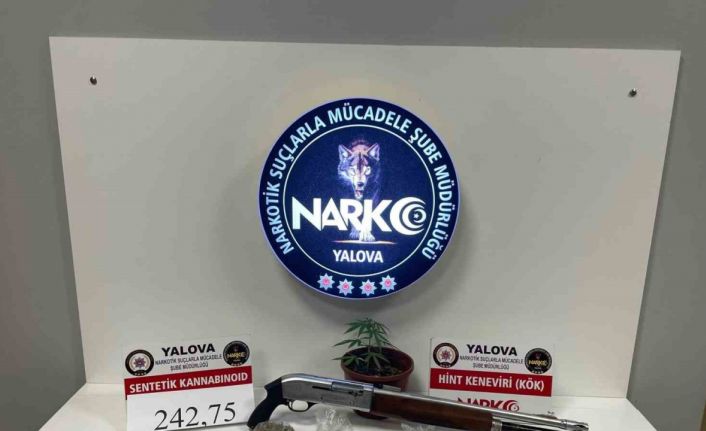 Yalova’da polis tarafından düzenlenen uyuşturucu operasyonunda yakalanan 3 kişi tutuklanırken, 242.75 gram sentetik kannabinoid, 1 adet Hint keneviri bitkisi, av tüfeği ve uyuşturucu ticaretinden elde edildiği değerlendirilen 65 bin 240 TL ele geçirildi.