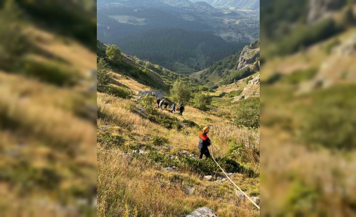 Artvin’in Şavşat ilçesinde merada otlarken yamaçtan düşen bir inek, AFAD ekiplerinin 12 saat süren çalışmasıyla kurtarıldı.