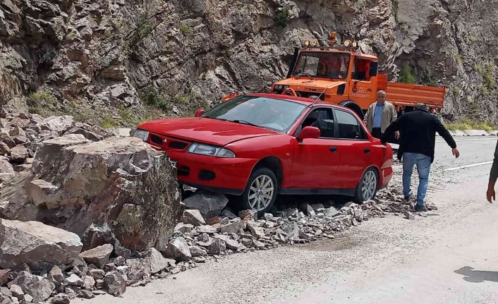 Gümüşhane’de, Torul-Kürtün Karayolunda yamaçtan kopan kayalar yola düştü. Olay anında karayolunu kullanan bir sürücü otomobiliyle kayaların altında kalmaktan saniyelerle kurtuldu.