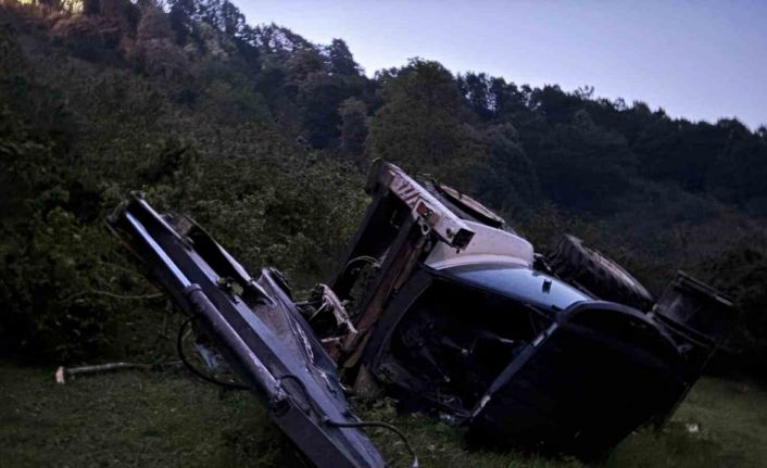 Sakarya’nın Hendek ilçesinde çalışma yapan bir iş makinesi yamaçtan yuvarlandı. Operatör, aracın kontrolünü kaybettiği anda atlayarak kazayı yara almadan atlattı.