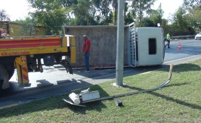 Antalya’nın Manavgat ilçesinde sürücüsünün direksiyon hakimiyetini kaybetmesi sonucu refüje çıkarak devrilen kamyonet, refüjdeki EDS kamerasını yerinden söktü.