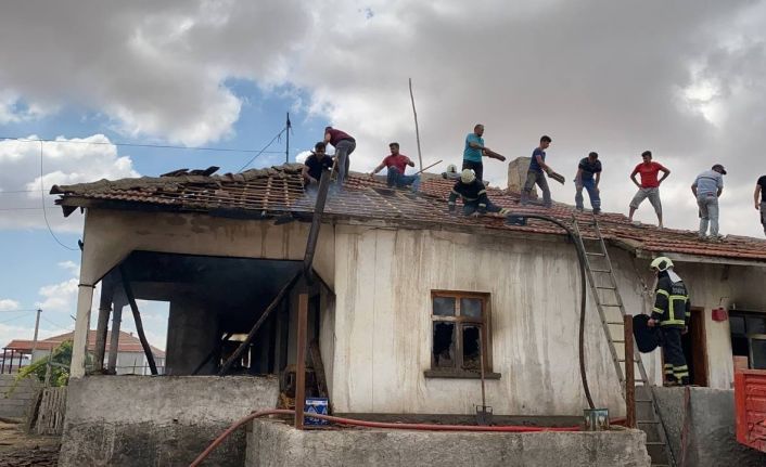 Aksaray’da müstakil evde çıkan yangında itfaiye ekipleri evin yanan odalarına müdahale ederken vatandaşlar da tutuşan çatıda karınca misali kiremitleri elden ele taşıyarak itfaiye ekiplerine destek verdi.