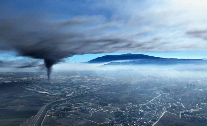 Öte yandan fotoğraf sanatçısı Hakan Toktay’ın dron ile kaydettiği fotoğraf kareleri de adeta yanardağı andırdı. Bursa’nın özellikle batı bölgesi ve Mudanya yolu olmak üzere gri dumanlarla kaplandığı dikkat çekerken, fotoğraf karesini görenler, "Yanardağ değil, fabrika yanıyor" yorumunu yaptılar.