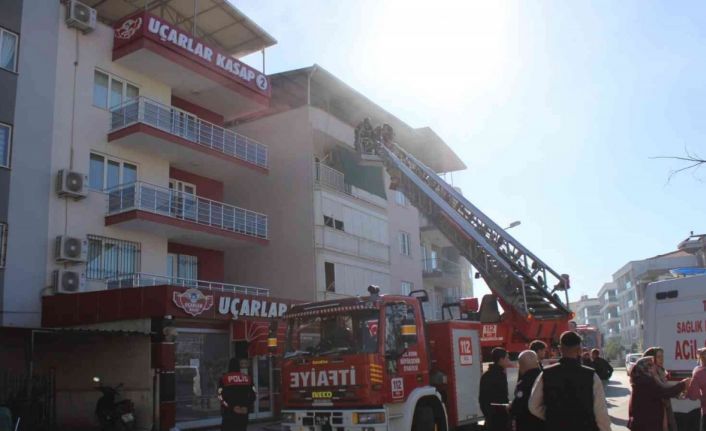 Aydın’ın Efeler ilçesinde apartmanın birinci katında çıkan yangında alevlerden kaçarak çatıya ve üst kattaki balkona sığınan 8’i çocuk 13 kişi itfaiye ekiplerinin müdahalesi ile kurtarıldı.