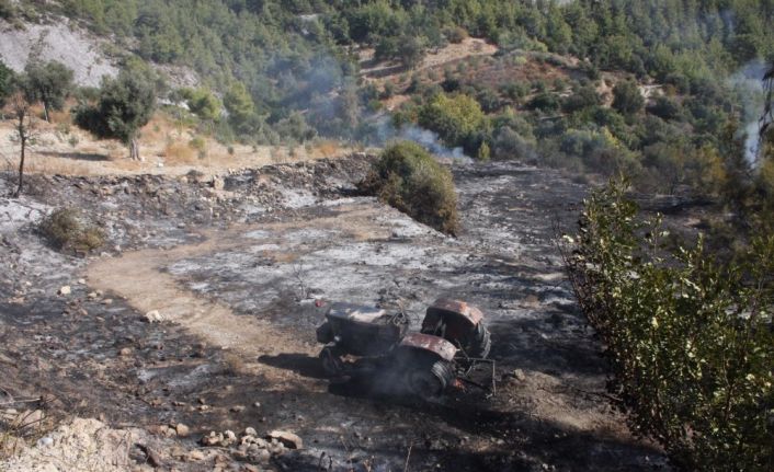 Antalya’nın Manavgat ilçesinde çıkan yangında, traktör ve içerisinde arıcılık malzemelerinin bulunduğu arı evi tamamen yandı. Arı kovanlarını yerleştirmek için toplanan kuru ot ve dalların yakılması sırasında çıkan yangında 4 dönüm kırsal alan da zarar gördü.