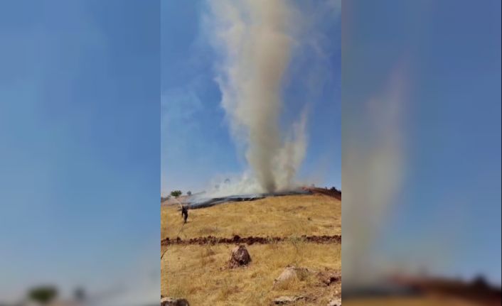 Adıyaman’da çıkan anız yangınlarında oluşan hortum, duman hortumuna dönüştü.