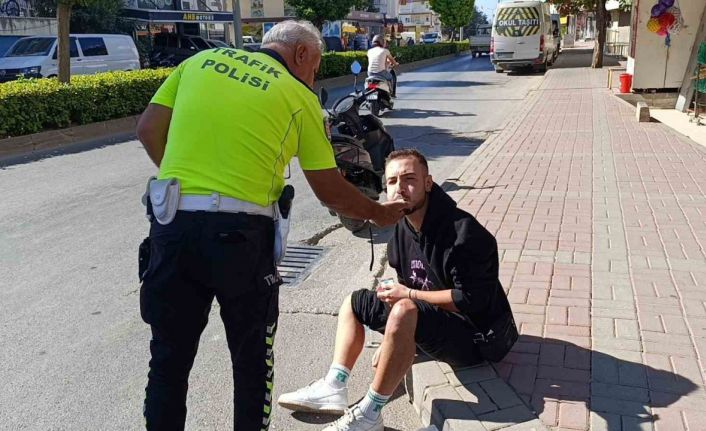 Antalya’nın Manavgat ilçesinde kamyonete çarpmamak için direksiyonu kıran sürücünün kullandığı motosiklet devrilerek süründü. Kazada ayağından yaralanan motosiklet sürücüsü olay yerine gelen trafik polisinin ısrarına rağmen kendisinin iyi hissettiğini belirterek hastaneye gitmedi.