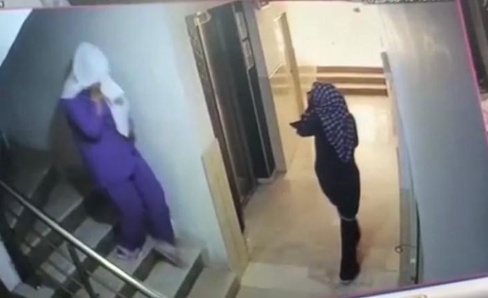 Eskişehir’de bir apartmana ‘Yardım toplama’ bahanesiyle girerek 70 bin TL değerinde para ve mücevher çalan 2 kadın hırsız, güvenlik kamerasına yakalandı.