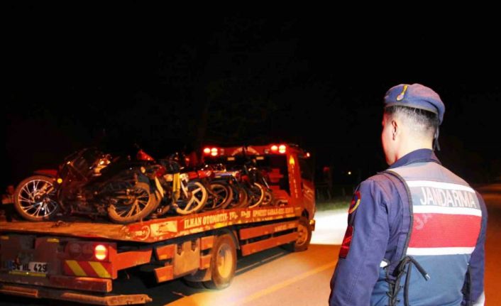 Akyazı ilçesinde bir motosiklet grubu yarış hazırlığına başladı. Motosikletlilerin peşinde olan Sakarya İl Jandarma Komutanlığı’na bağlı Akyazı ilçe trafik ekipleri de gençlerin yarış hayalini suya düşürdü. Jandarma ekipleri, Osmanbey Mahallesi’nde yarış hazırlığı yapan motosikletçilerin yarışını daha başlamadan sonlandırdı. Ekiplerce gerçekleştirilen operasyonda yarış hazırlığında olan birçok motosiklet çekiciye yüklenerek yediemin otoparkına çekildi. Motosikletlerden bazılarının trafikten men edildiği öğrenilirken, yarış hayalleri suya düşen sürücülere ise yaklaşık 400 bin TL cezai işlem uygulandı. Öte yandan, ceza yiyen gençlerin çekiciye yüklenen motosikletlerinin önünde poz verdiği anlar da dikkatlerden kaçmadı.