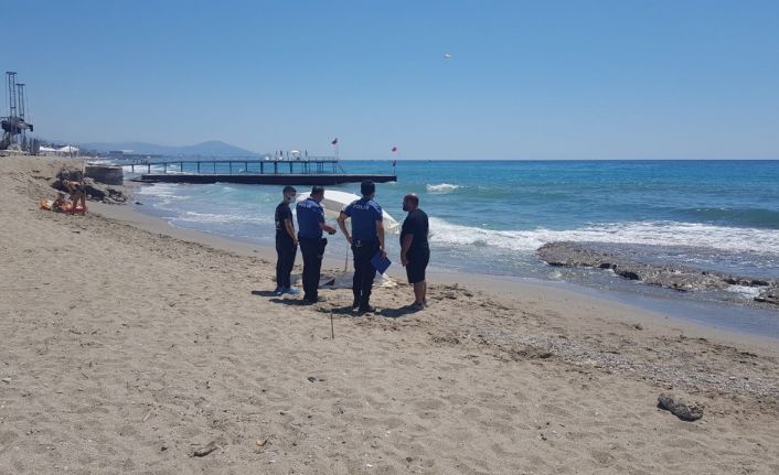 Öte yandan kıyıdaki cesede plaj şemsiyesi ile koruma yapılırken, bir kadın turistin hiçbir şey olmamış gibi denize girmeye devam ettiği görüldü.