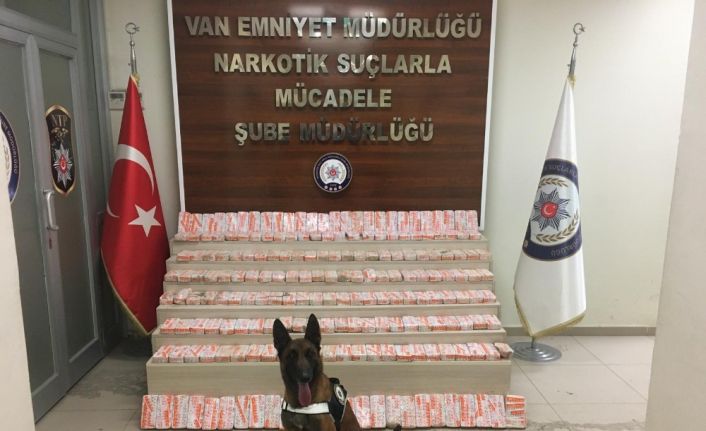 Van’da polis ekiplerince yapılan operasyonda bir evin yatak odasında narkotik madde arama köpeği Zeyna ile yapılan aramada 102 kilo 385 gram eroin ele geçirildi.