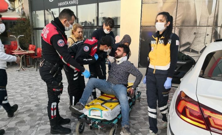 Aksaray’da 2 otomobilin çarpışması sonucu meydana gelen trafik kazasında otomobil AVM’nin duvarına çarparak durabilirken, sedyeye yatırılan ve defalarca kalkmak isteyen yaralı sürücüyü polis güçlükle ikna etti.