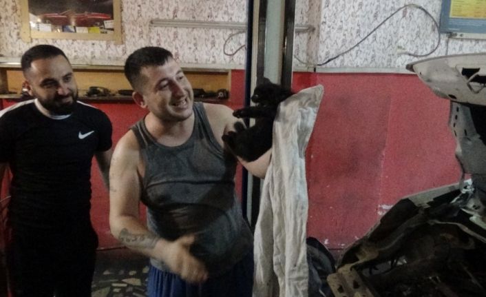 Balıkesir’in Burhaniye ilçesinde park halindeki kamyonetin içinden gelen kedi sesi nedeniyle araç sahibi 8 saat süren bir çalışma ile aracını adeta parçalayarak yavru kediyi kurtardı.