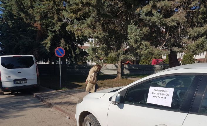 Yaya yoluna park edilen aracın camına asılan yazı şaşkına çevirdi