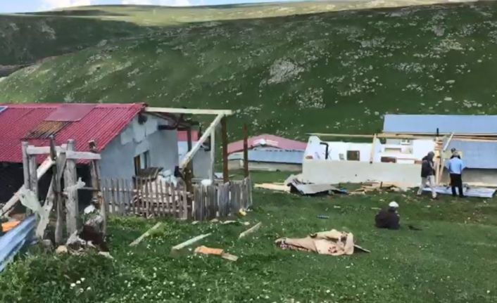 Artvin’in Şavşat ilçesine bağlı Yığılı Yaylasında dün öğle saatlerinde meydana gelen fırtına evlerin ve ahırların çatısını uçurdu.