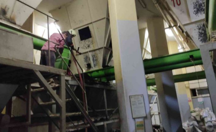Mersin’in Tarsus ilçesinde bir yem fabrikasının silo bölümünde çıkan yangında, 15 ton keçi boynuzu yandı.