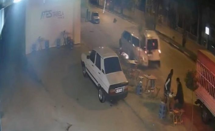 Osmaniye’nin Kadirli ilçesinde direksiyon hakimiyetini kaybeden sürücünün kullandığı hafif ticari araç, park halindeki otomobile çarptı. Kazada yaralanan 4 kişiden 2’si, o sırada kaldırımda yemek yerken kaza yapan araçların çarpması ile yaralandı. O anlar, bir iş yerinin güvenlik kamerasına anbean yansıdı.