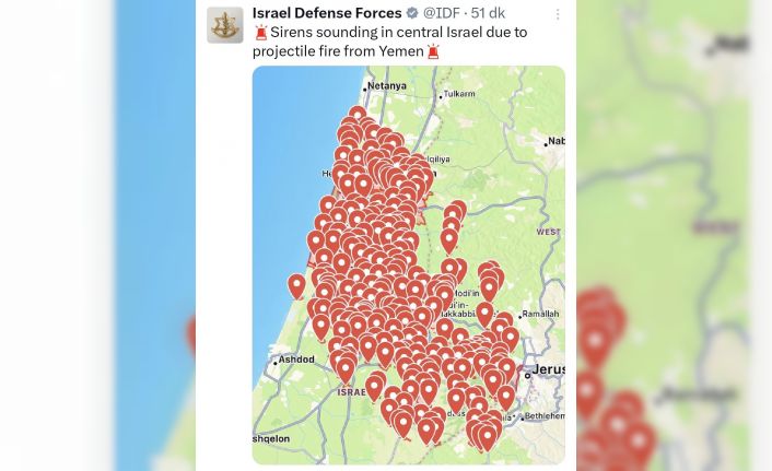 İsrail ordusu, Yemen’den fırlatılan bir füze nedeniyle ülkenin merkez bölgelerinde sirenlerin çaldığını ve halka sığınaklara gitme çağrısı yapıldığını açıkladı. Füzenin İsrail hava sahasına girmeden önce düşürüldüğü bildirildi.