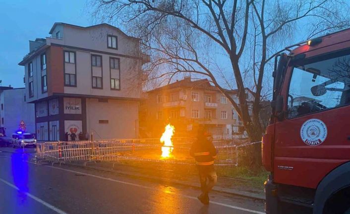 İlginç olay, saat 14.00 sıralarında Dumlupınar Mahallesi Bedir Sokak’ta metro inşaatının sondaj çalışması sırasında meydana geldi. Yaklaşık 47 metre derinlikte sondaj çalışması yapıldığı sırada yüzeye çıkan metan gazı alevlendi. İşçilerin 112 Acil Çağrı Merkezi’ne ihbarda bulunması üzerine bölgeye polis, sağlık, itfaiye ve AFAD ekipleri sevk edildi. Şerit çeken ve demir bariyerle yangının çevresine girişleri kapatan ekipler, bölgede güvenlik önlemi aldı.