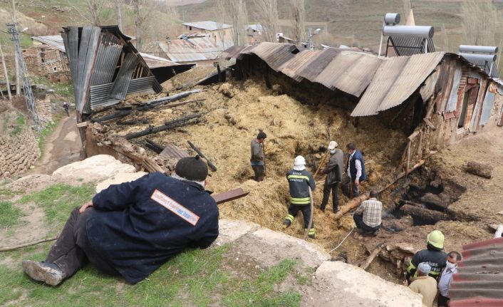 Sivas’ın Kolluca köyünde samanlıkta çıkan yangını yere uzanıp film seyreder gibi izleyen vatandaş, görenlerin dikkatini çekti.