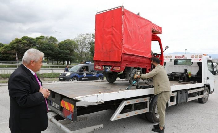 Samsun İlkadım Belediyesi Zabıta Müdürlüğü, “katı atık toplama lisansı” olmayan çekçekçinin aracına el koydu.